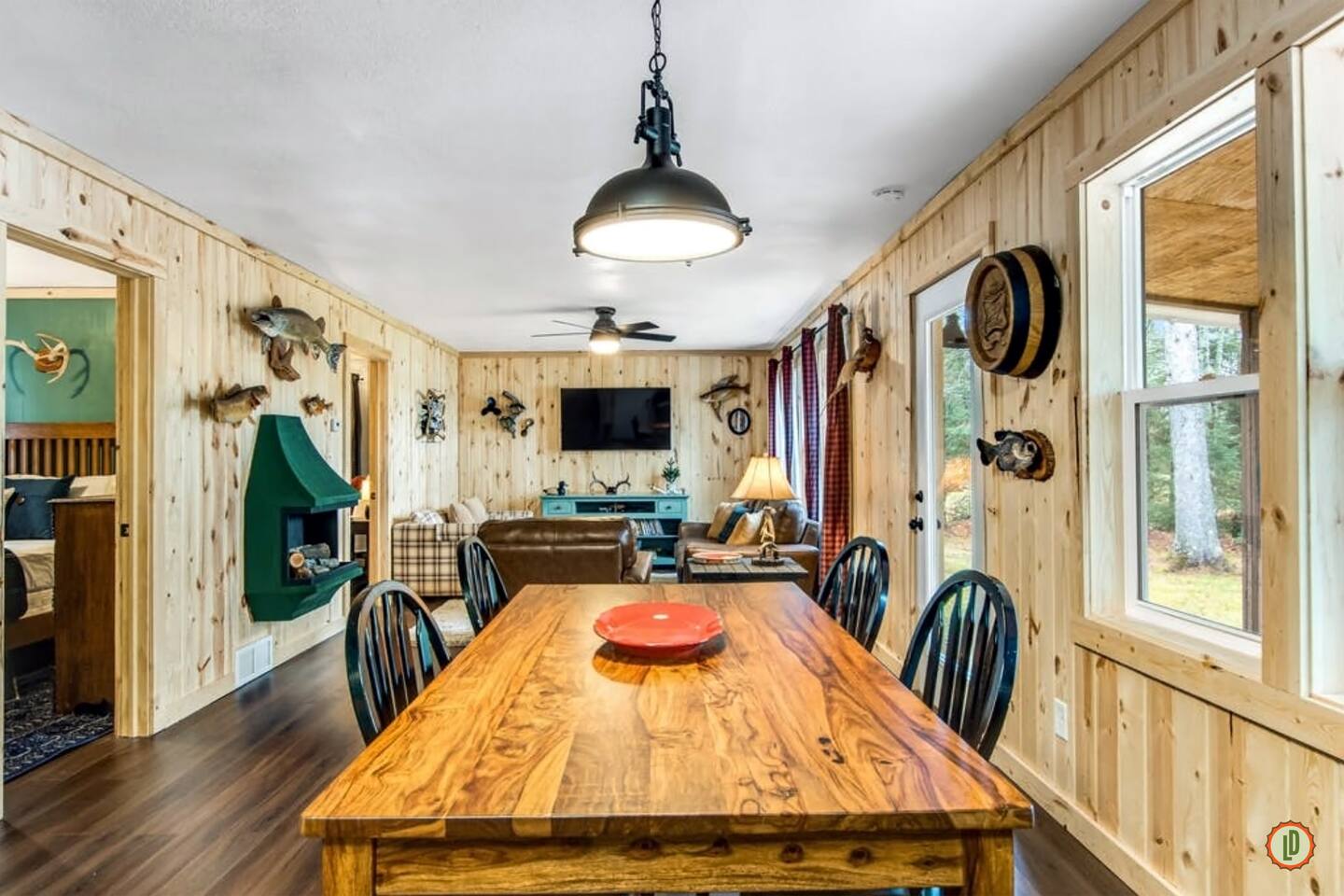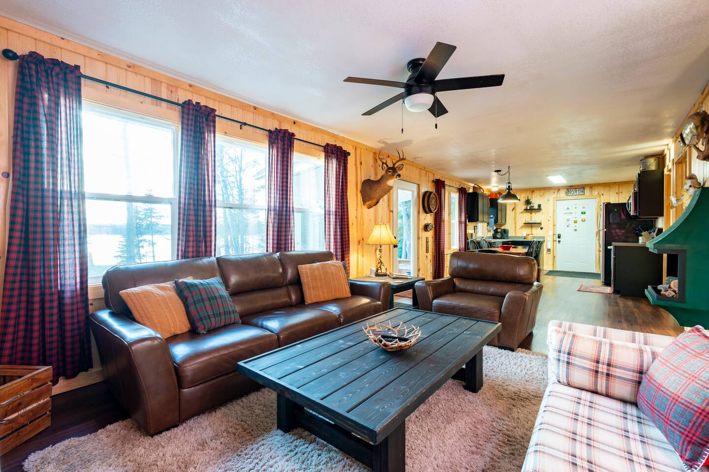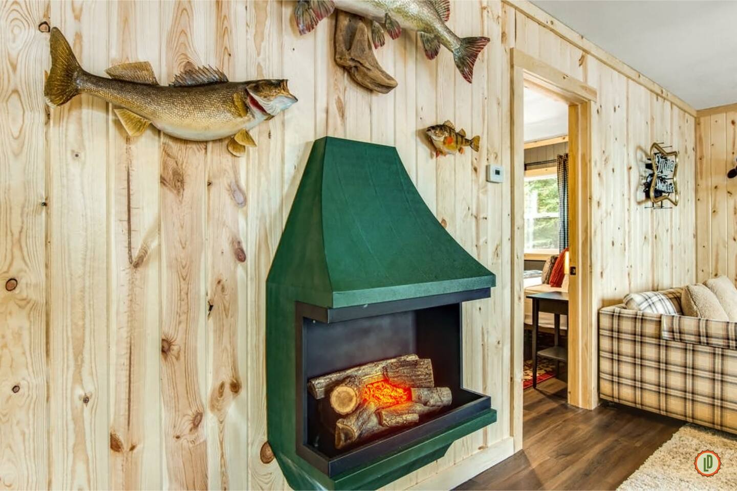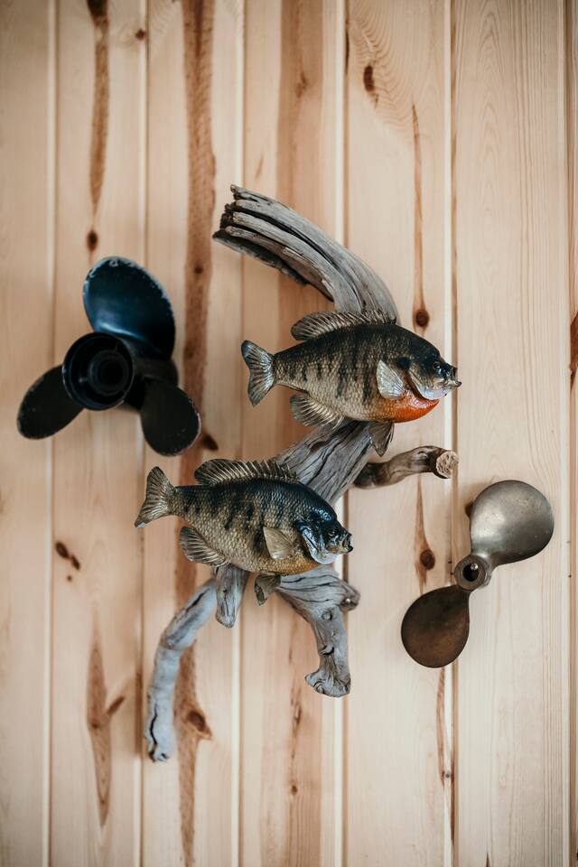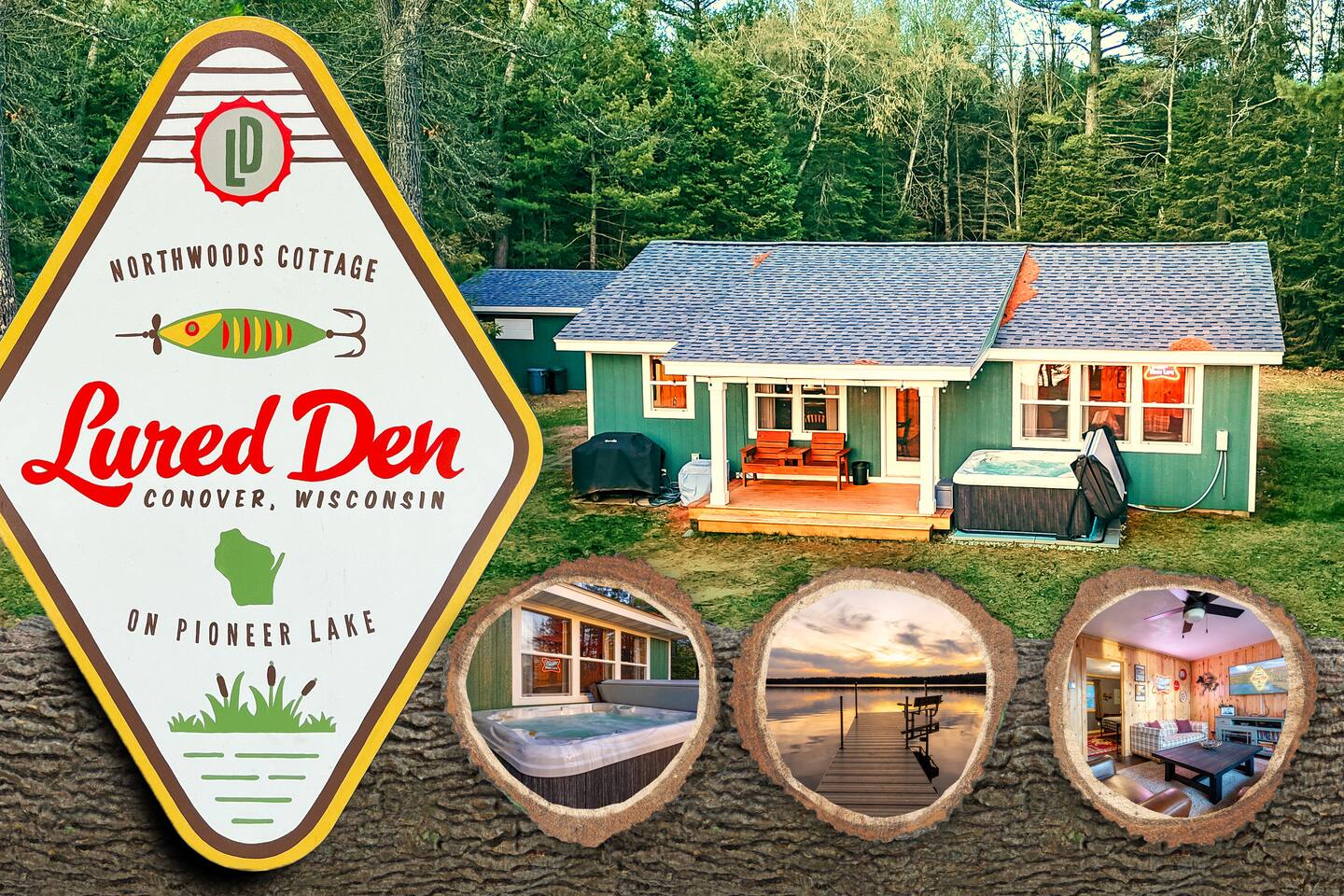 Lured Den is an absolute haven for those seeking a serene retreat in the heart of the Northwoods! The journey through the tunnel of pines sets a magical tone from the moment guests arrive, and the renovated 1950s cottage promises both nostalgia and modern comfort in equal measure. The kitchen, with its gleaming stainless appliances and cozy pine paneling, invites guests to whip up delicious meals while enjoying the ambiance of the vintage electric fireplace. And with modern conveniences like the wall-mounted smart TV and central air and heat, guests can truly relax and unwind in style. The bedrooms offer a snug refuge with plush beds and extra blankets for chilly nights, while the inclusion of a washer/dryer unit ensures convenience throughout the stay. The covered porch, complete with a roomy hot tub, sounds like an absolute dream for soaking in the tranquility of the surroundings while listening to the calls of the loons and watching eagles gracefully soar overhead. The private dock provides the perfect spot to witness stunning sunsets over the lake, and the provided kayaks offer an opportunity for exploration and wildlife spotting on the pristine waters. For fishing enthusiasts, the option to tie up their own boat or rent one nearby opens up endless possibilities for angling adventures on the lake. With its blend of natural beauty and modern comforts, Lured Den offers an unforgettable escape where guests can create cherished memories and truly experience the essence of the Northwoods. It's the ultimate destination for relaxation, adventure, and reconnecting with loved ones. NOTE: Pioneer Lake has beautiful clear water with a sandy bottom under our dock. However, we cannot control the weather or lake conditions. Later in the summer, there is more chance for chopped weeds to drift into the shoreline.