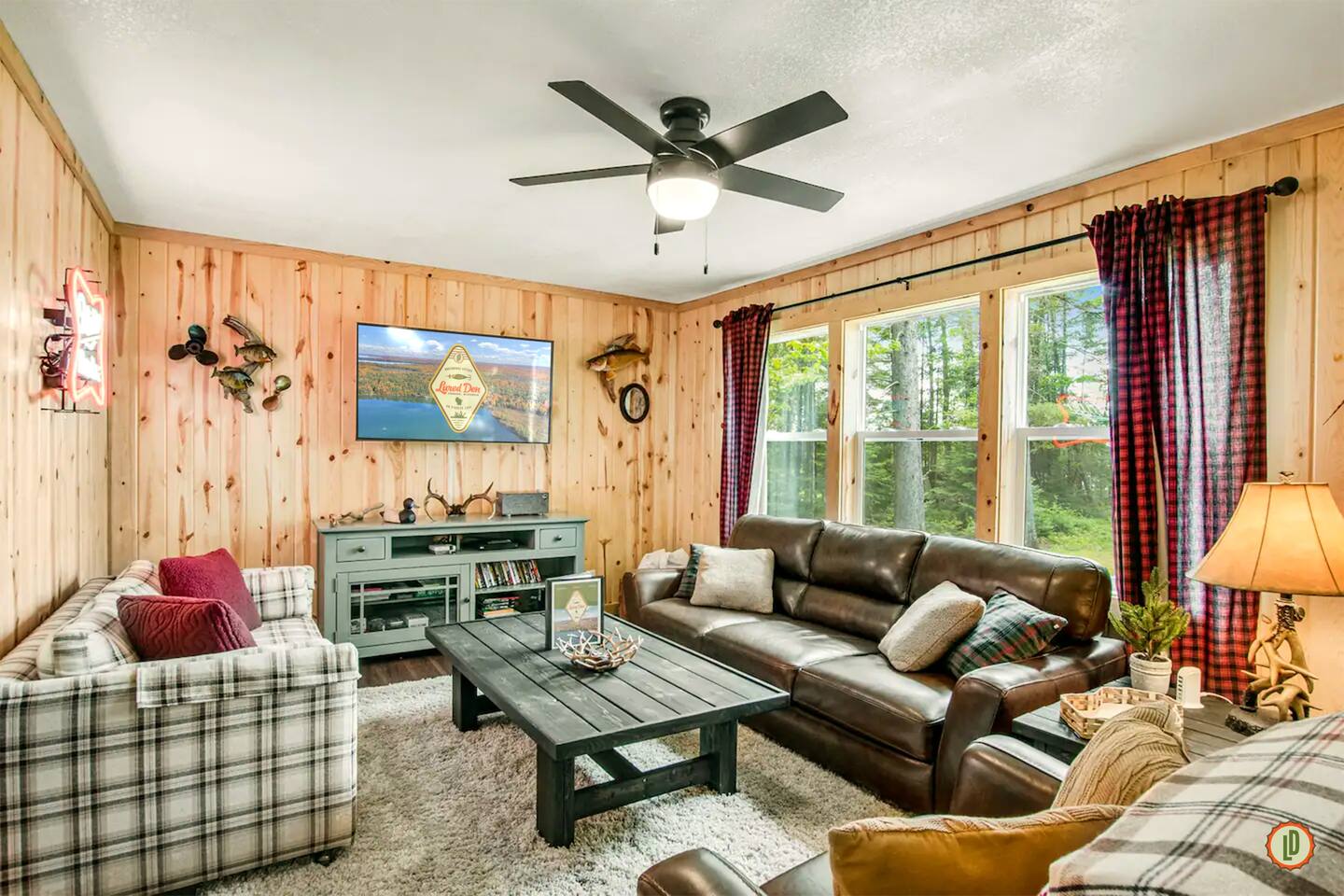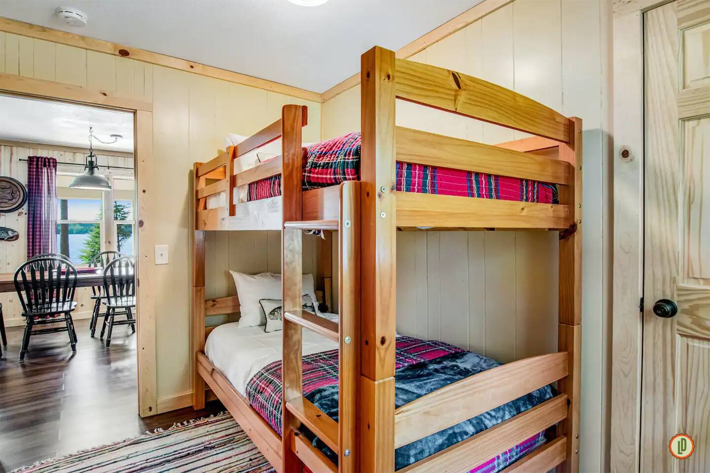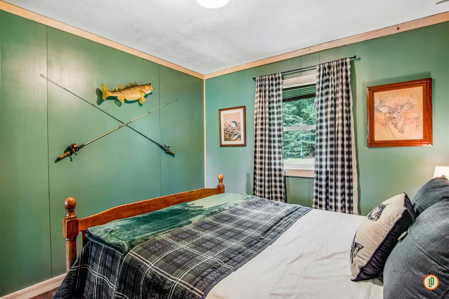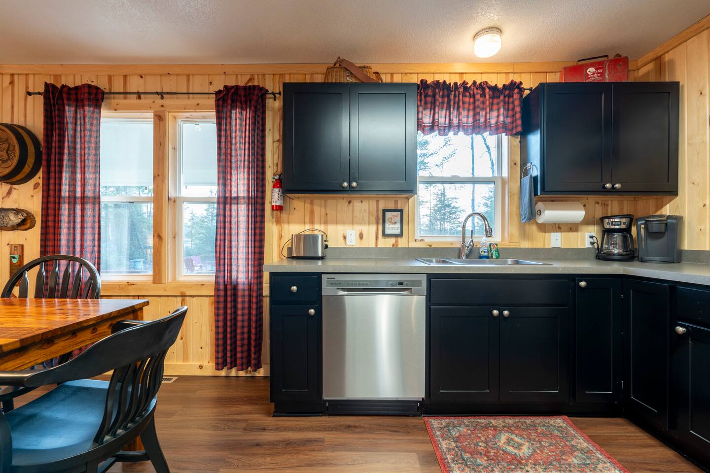 Lured Den is an absolute haven for those seeking a serene retreat in the heart of the Northwoods! The journey through the tunnel of pines sets a magical tone from the moment guests arrive, and the renovated 1950s cottage promises both nostalgia and modern comfort in equal measure. The kitchen, with its gleaming stainless appliances and cozy pine paneling, invites guests to whip up delicious meals while enjoying the ambiance of the vintage electric fireplace. And with modern conveniences like the wall-mounted smart TV and central air and heat, guests can truly relax and unwind in style. The bedrooms offer a snug refuge with plush beds and extra blankets for chilly nights, while the inclusion of a washer/dryer unit ensures convenience throughout the stay. The covered porch, complete with a roomy hot tub, sounds like an absolute dream for soaking in the tranquility of the surroundings while listening to the calls of the loons and watching eagles gracefully soar overhead. The private dock provides the perfect spot to witness stunning sunsets over the lake, and the provided kayaks offer an opportunity for exploration and wildlife spotting on the pristine waters. For fishing enthusiasts, the option to tie up their own boat or rent one nearby opens up endless possibilities for angling adventures on the lake. With its blend of natural beauty and modern comforts, Lured Den offers an unforgettable escape where guests can create cherished memories and truly experience the essence of the Northwoods. It's the ultimate destination for relaxation, adventure, and reconnecting with loved ones. NOTE: Pioneer Lake has beautiful clear water with a sandy bottom under our dock. However, we cannot control the weather or lake conditions. Later in the summer, there is more chance for chopped weeds to drift into the shoreline.