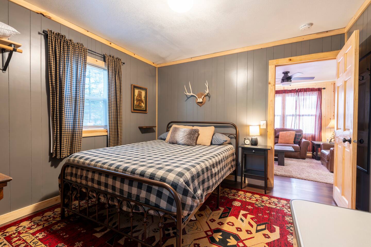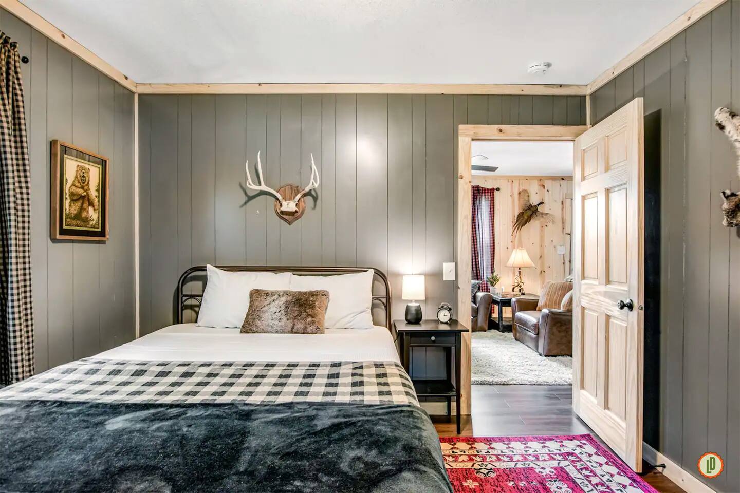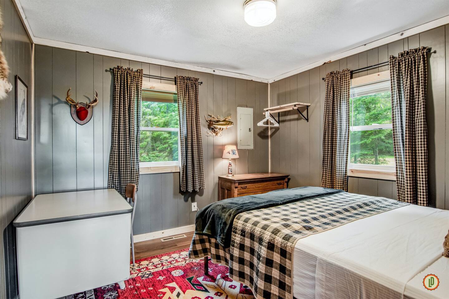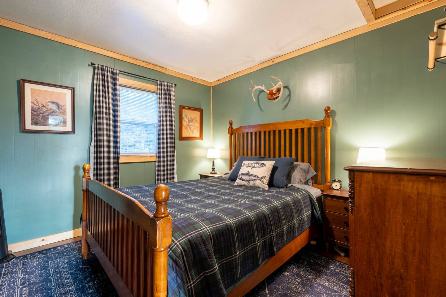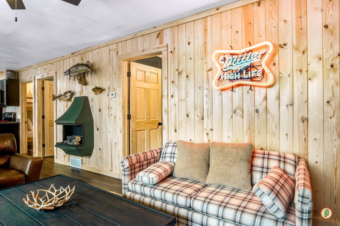 Lured Den is an absolute haven for those seeking a serene retreat in the heart of the Northwoods! The journey through the tunnel of pines sets a magical tone from the moment guests arrive, and the renovated 1950s cottage promises both nostalgia and modern comfort in equal measure. The kitchen, with its gleaming stainless appliances and cozy pine paneling, invites guests to whip up delicious meals while enjoying the ambiance of the vintage electric fireplace. And with modern conveniences like the wall-mounted smart TV and central air and heat, guests can truly relax and unwind in style. The bedrooms offer a snug refuge with plush beds and extra blankets for chilly nights, while the inclusion of a washer/dryer unit ensures convenience throughout the stay. The covered porch, complete with a roomy hot tub, sounds like an absolute dream for soaking in the tranquility of the surroundings while listening to the calls of the loons and watching eagles gracefully soar overhead. The private dock provides the perfect spot to witness stunning sunsets over the lake, and the provided kayaks offer an opportunity for exploration and wildlife spotting on the pristine waters. For fishing enthusiasts, the option to tie up their own boat or rent one nearby opens up endless possibilities for angling adventures on the lake. With its blend of natural beauty and modern comforts, Lured Den offers an unforgettable escape where guests can create cherished memories and truly experience the essence of the Northwoods. It's the ultimate destination for relaxation, adventure, and reconnecting with loved ones. NOTE: Pioneer Lake has beautiful clear water with a sandy bottom under our dock. However, we cannot control the weather or lake conditions. Later in the summer, there is more chance for chopped weeds to drift into the shoreline.