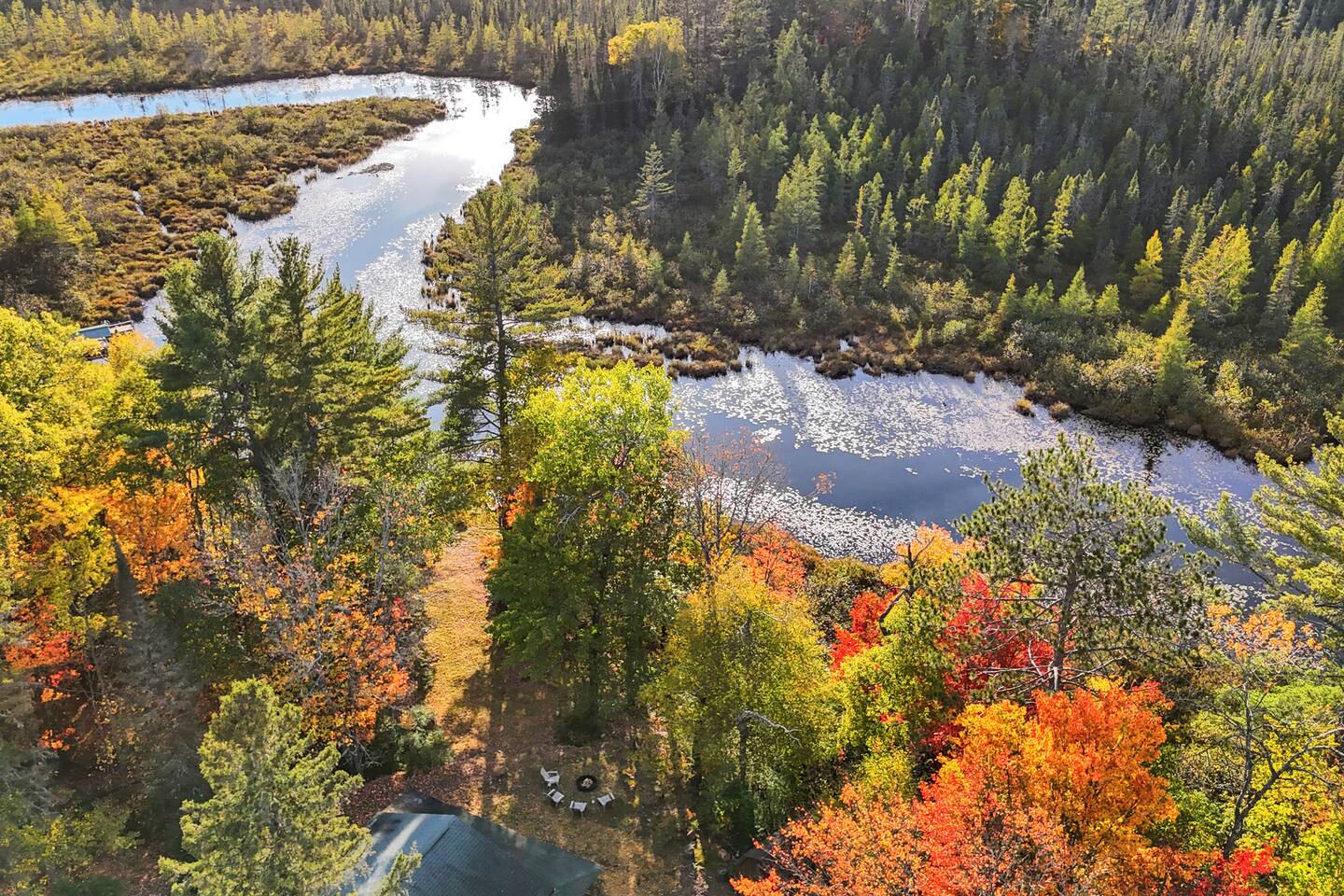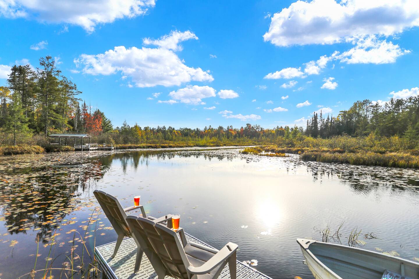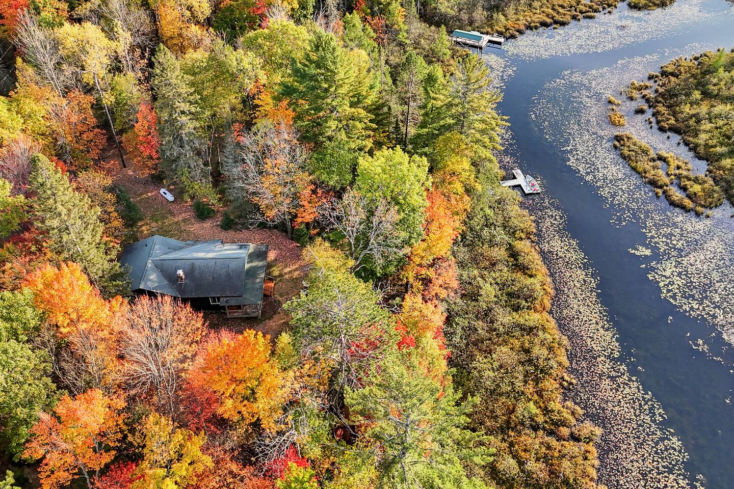 Welcome to The Elkstone, a serene and spacious Northwoods retreat nestled along the banks of Pioneer Creek in beautiful Conover, Wisconsin—just minutes from Eagle River. Surrounded by towering pines and tranquil waters, this log-style vacation home blends rustic charm with modern comfort, offering the perfect year-round escape for families, couples, or outdoor enthusiasts. 🌲 Your Private Northwoods Escape Crafted for comfort and connection, The Elkstone features warm wood interiors, vaulted ceilings, and large windows that fill the space with natural light. With room for up to 10 guests, the home offers a full kitchen, cozy living areas, and multiple bedrooms and baths for a relaxing and flexible stay. Unwind on two spacious, rustic log-covered porches, strung with soft lights that create a magical evening ambiance. After a day of adventure, soak in the private hot tub, toast marshmallows at the fire pit by the creek, or curl up by the wood-burning fireplace indoors. 🌊 Direct Water Access to Pioneer Creek & Lake One of The Elkstone’s most unique and beloved features is its private access to Pioneer Creek, complete with a private dock for easy water access. Just a 20 minute motor boat ride down the creek brings you to Pioneer Lake, a 430-acre full-recreation lake perfect for boating, fishing, tubing, or just cruising at sunset. No need to bring your own gear—we provide: 2 paddle boards 2 kayaks 1 canoe 1 row boat Life Jackets Enjoy peaceful mornings paddling through the mist, cast a line in the afternoon sun, or pack a picnic and spend the day exploring the lake. Local boat rentals are also available if you’d like to bring in a motorized boat for full-lake recreation. 🛋️ Included Amenities Direct waterfront access to Pioneer Creek & Lake Private dock & included watercraft (2 kayaks, 2 paddle boards, canoe, row boat) Two large log-covered porches with string lights Outdoor hot tub next to covered porch Fire pit by the creek (firewood provided) Fully stocked kitchen with modern appliances Smart TV & Wi-Fi Wood-burning fireplace Gas grill Washer & dryer Ample parking (room for trailers, boats, or ATVs) Pet-friendly (with approval) 🚤 Outdoor Adventure at Your Fingertips Fishing & Boating: Pioneer Lake offers excellent fishing for bass, northern pike, walleye, perch and panfish. Launch directly from your own dock! Hiking & Biking: Explore scenic nearby trails including Anvil Lake and the Heart of Vilas Trail System. Snowmobiling, UTV and ATV: Ride straight from the property to nearby Vilas County’s renowned trail network. Wildlife Viewing: Spot eagles, waterfoul, loons, deer, and more—nature is always close at The Elkstone. 🍽️ Local Dining & Attractions Dine lakeside at Bauer's Dam or enjoy classic Northwoods pizza at Log Cabin Explore local breweries like Tribute Brewing Co. in Eagle River Shop for unique finds and handmade goods in downtown Eagle River Enjoy seasonal events like the Cranberry Fest, Artarama, Farmer's Market and the World Championship Snowmobile Derby The Elkstone offers the perfect balance of comfort, adventure, and natural beauty. Whether you’re relaxing in the hot tub, paddling on Pioneer Creek, or roasting s’mores under a canopy of stars, every moment here invites you to slow down, explore, and make unforgettable memories. Book your Northwoods adventure today at The Elkstone—your lakeside home away from home.