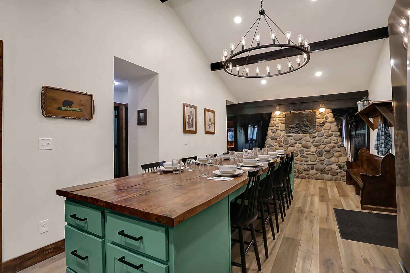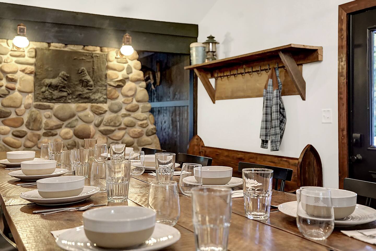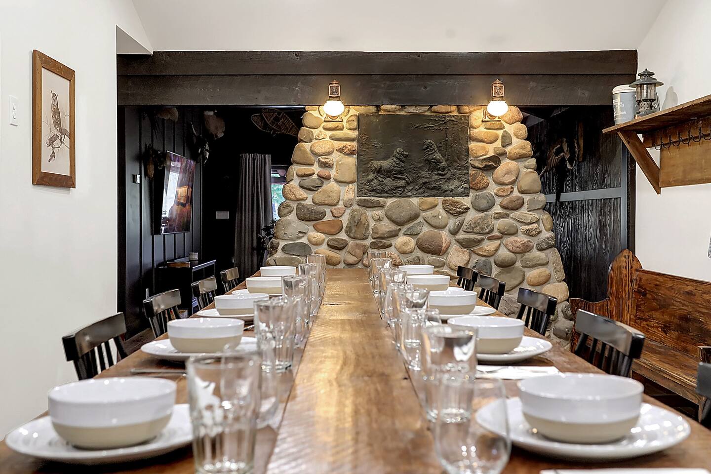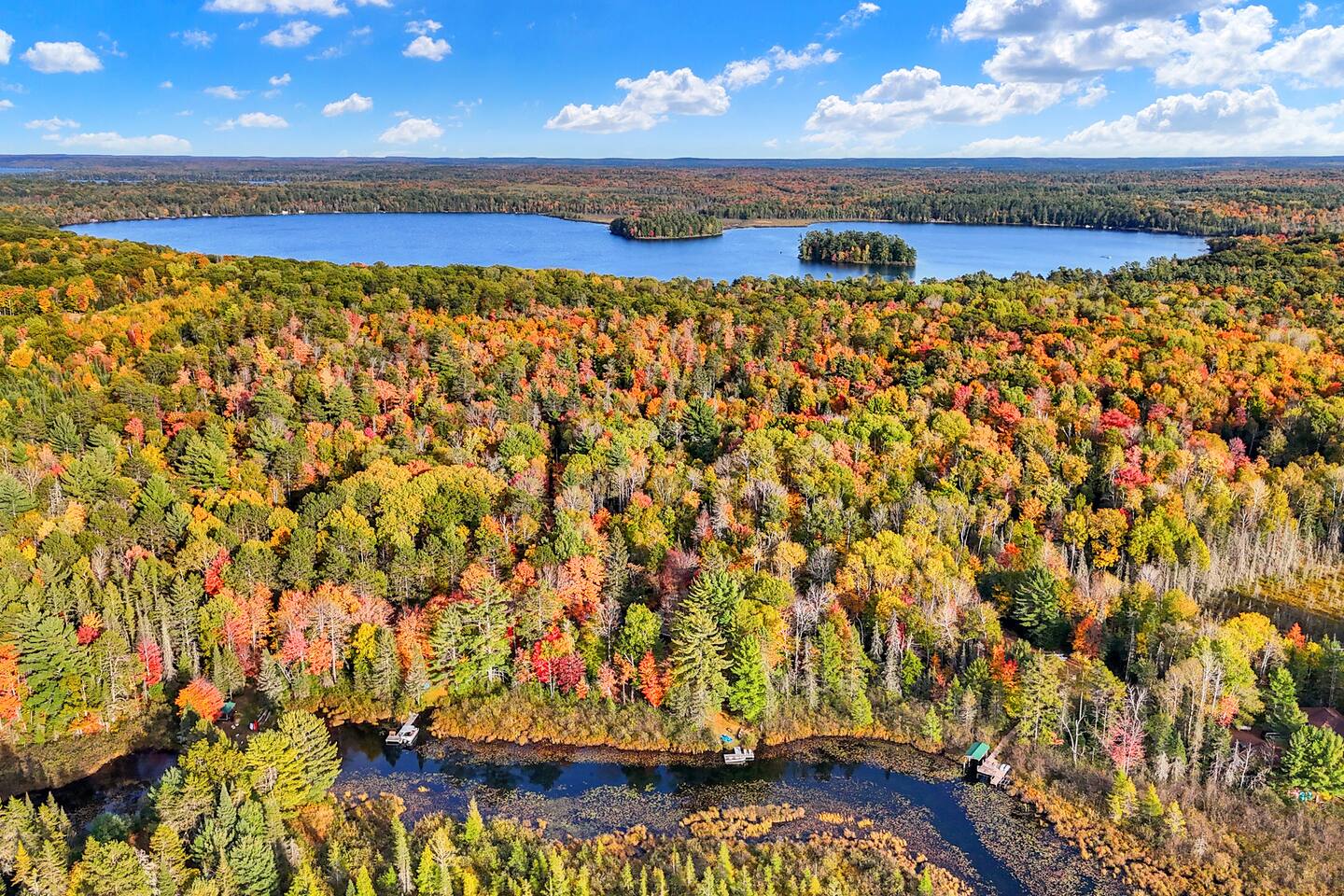 Welcome to The Elkstone, a serene and spacious Northwoods retreat nestled along the banks of Pioneer Creek in beautiful Conover, Wisconsin—just minutes from Eagle River. Surrounded by towering pines and tranquil waters, this log-style vacation home blends rustic charm with modern comfort, offering the perfect year-round escape for families, couples, or outdoor enthusiasts. 🌲 Your Private Northwoods Escape Crafted for comfort and connection, The Elkstone features warm wood interiors, vaulted ceilings, and large windows that fill the space with natural light. With room for up to 10 guests, the home offers a full kitchen, cozy living areas, and multiple bedrooms and baths for a relaxing and flexible stay. Unwind on two spacious, rustic log-covered porches, strung with soft lights that create a magical evening ambiance. After a day of adventure, soak in the private hot tub, toast marshmallows at the fire pit by the creek, or curl up by the wood-burning fireplace indoors. 🌊 Direct Water Access to Pioneer Creek & Lake One of The Elkstone’s most unique and beloved features is its private access to Pioneer Creek, complete with a private dock for easy water access. Just a 20 minute motor boat ride down the creek brings you to Pioneer Lake, a 430-acre full-recreation lake perfect for boating, fishing, tubing, or just cruising at sunset. No need to bring your own gear—we provide: 2 paddle boards 2 kayaks 1 canoe 1 row boat Life Jackets Enjoy peaceful mornings paddling through the mist, cast a line in the afternoon sun, or pack a picnic and spend the day exploring the lake. Local boat rentals are also available if you’d like to bring in a motorized boat for full-lake recreation. 🛋️ Included Amenities Direct waterfront access to Pioneer Creek & Lake Private dock & included watercraft (2 kayaks, 2 paddle boards, canoe, row boat) Two large log-covered porches with string lights Outdoor hot tub next to covered porch Fire pit by the creek (firewood provided) Fully stocked kitchen with modern appliances Smart TV & Wi-Fi Wood-burning fireplace Gas grill Washer & dryer Ample parking (room for trailers, boats, or ATVs) Pet-friendly (with approval) 🚤 Outdoor Adventure at Your Fingertips Fishing & Boating: Pioneer Lake offers excellent fishing for bass, northern pike, walleye, perch and panfish. Launch directly from your own dock! Hiking & Biking: Explore scenic nearby trails including Anvil Lake and the Heart of Vilas Trail System. Snowmobiling, UTV and ATV: Ride straight from the property to nearby Vilas County’s renowned trail network. Wildlife Viewing: Spot eagles, waterfoul, loons, deer, and more—nature is always close at The Elkstone. 🍽️ Local Dining & Attractions Dine lakeside at Bauer's Dam or enjoy classic Northwoods pizza at Log Cabin Explore local breweries like Tribute Brewing Co. in Eagle River Shop for unique finds and handmade goods in downtown Eagle River Enjoy seasonal events like the Cranberry Fest, Artarama, Farmer's Market and the World Championship Snowmobile Derby The Elkstone offers the perfect balance of comfort, adventure, and natural beauty. Whether you’re relaxing in the hot tub, paddling on Pioneer Creek, or roasting s’mores under a canopy of stars, every moment here invites you to slow down, explore, and make unforgettable memories. Book your Northwoods adventure today at The Elkstone—your lakeside home away from home.