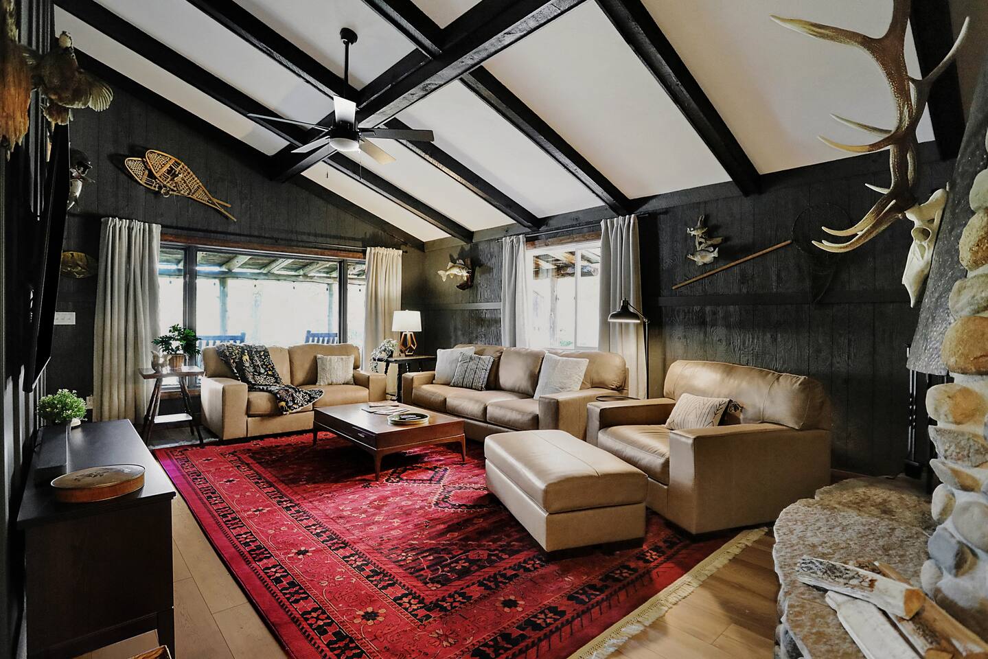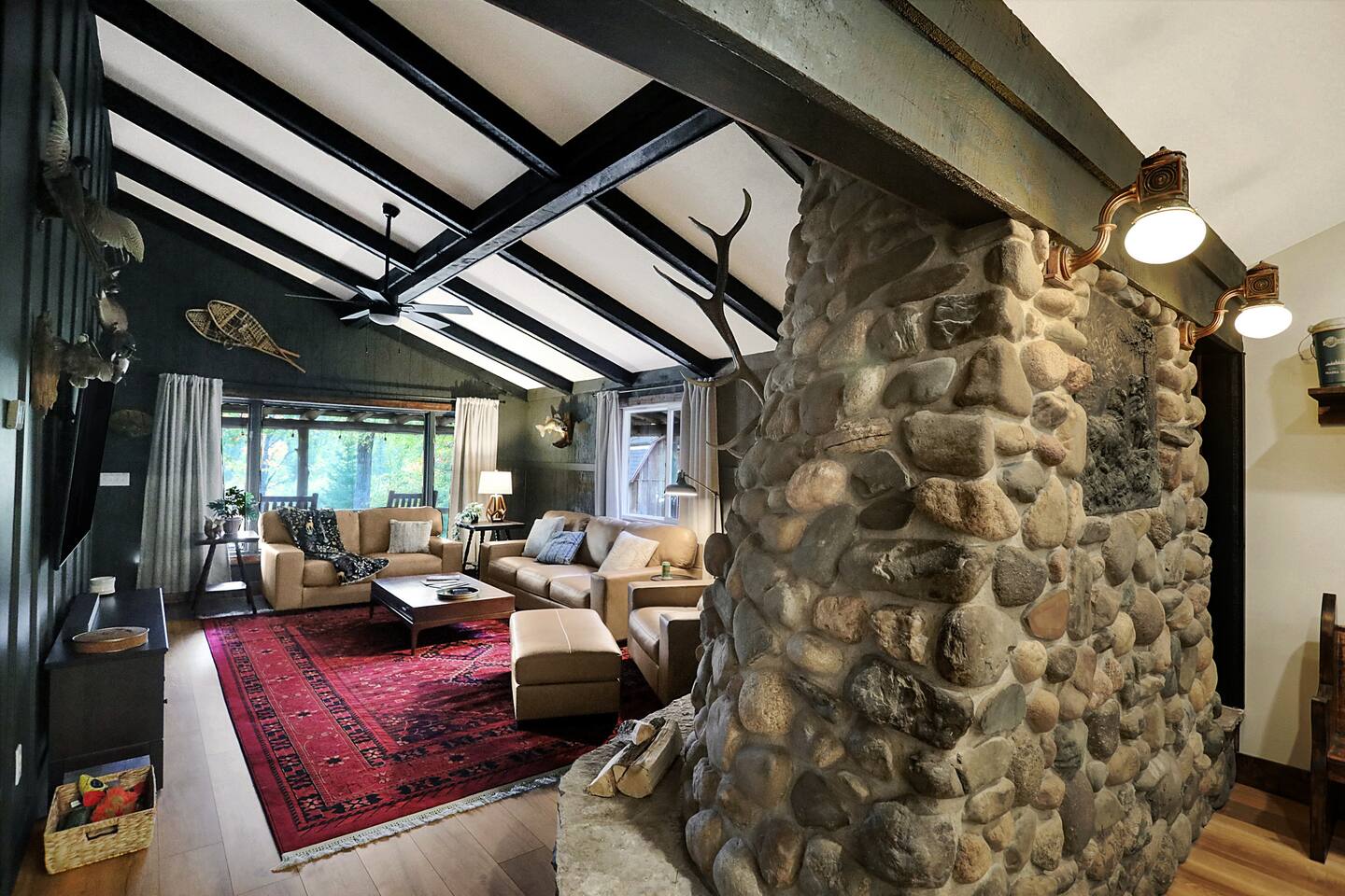 Welcome to The Elkstone! Experience the Northwoods in comfort and style in a completely renovated, unique and spacious home with all the amenities. Enjoy a peaceful and private vacation nestled in the pines with river frontage and lake access. Bring your own boat to access the crystal clear waters of Pioneer Lake, just a 15 minute boat ride away. Make use of our pier, fire pit, 2 kayaks, 2 paddle boards, rowboat, canoe, covered porches and more. All this just a short drive from Eagle River.